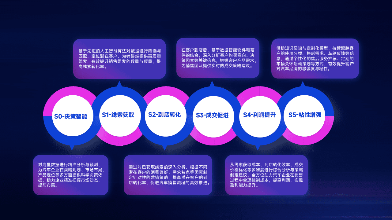 通过拓宽潜在客户来源、、优化线索分配并提高到店转化率,,,以增强销售效率。。同时,,,,利用线索数据不断优化分析模型,,,有效提升转化率,,,,扩大营销影响力。。